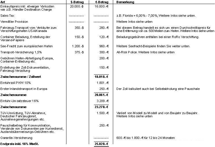 die korrekte Kalkulation eines Fahrzeug-Imports aus den USA oder