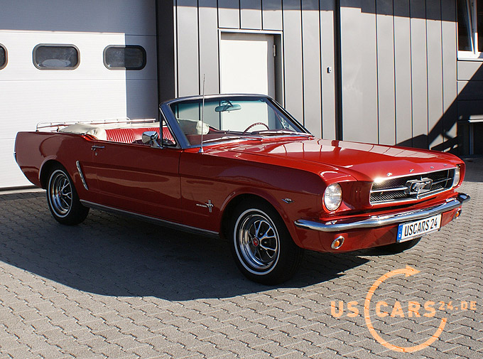 289er 4.7L V8 Motor mit 4-Gang Schaltgetriebe, GT Styled Steel Wheels mit neuer Weisswand Bereifung, Elektrisches Cabrio Verdeck, Cabrio Persenning weiss, Original Mittelkonsole, Neue Pony Leder Innen-Ausstattung in zweifarbig Rot-Weiss, Sicherheitsgurte vorne und hinten, Aussenspiegel auf Fahrer- und Beifahrerseite, Gepäckträger auf Heckklappe, Chrom Luftfilter etc.
