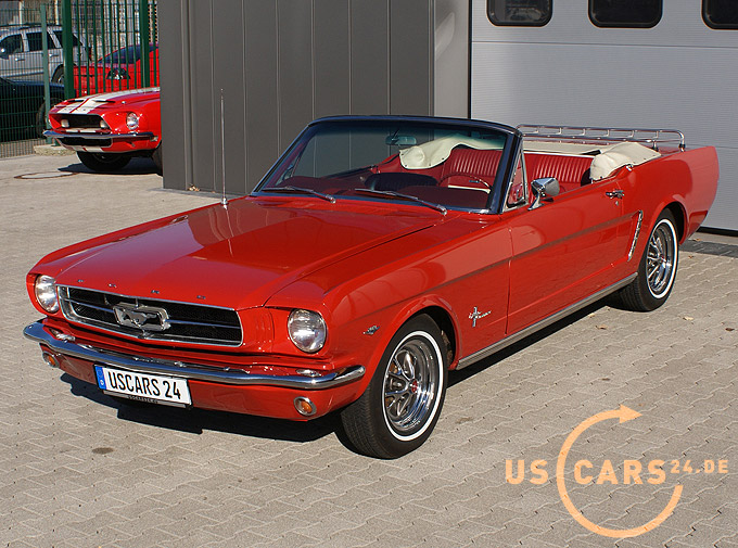289er 4.7L V8 Motor mit 4-Gang Schaltgetriebe, GT Styled Steel Wheels mit neuer Weisswand Bereifung, Elektrisches Cabrio Verdeck, Cabrio Persenning weiss, Original Mittelkonsole, Neue Pony Leder Innen-Ausstattung in zweifarbig Rot-Weiss, Sicherheitsgurte vorne und hinten, Aussenspiegel auf Fahrer- und Beifahrerseite, Gepäckträger auf Heckklappe, Chrom Luftfilter etc.
