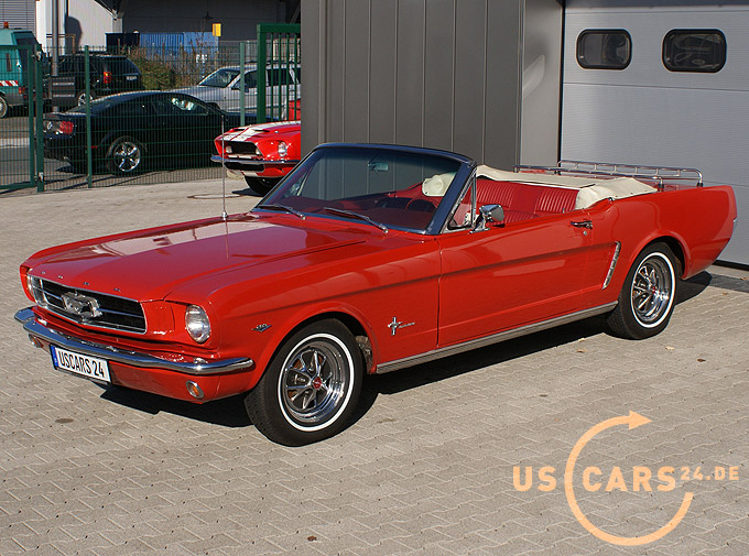 289er 4.7L V8 Motor mit 4-Gang Schaltgetriebe, GT Styled Steel Wheels mit neuer Weisswand Bereifung, Elektrisches Cabrio Verdeck, Cabrio Persenning weiss, Original Mittelkonsole, Neue Pony Leder Innen-Ausstattung in zweifarbig Rot-Weiss, Sicherheitsgurte vorne und hinten, Aussenspiegel auf Fahrer- und Beifahrerseite, Gepäckträger auf Heckklappe, Chrom Luftfilter etc.