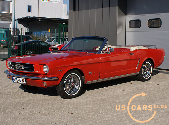 289er 4.7L V8 Motor mit 4-Gang Schaltgetriebe, GT Styled Steel Wheels mit neuer Weisswand Bereifung, Elektrisches Cabrio Verdeck, Cabrio Persenning weiss, Original Mittelkonsole, Neue Pony Leder Innen-Ausstattung in zweifarbig Rot-Weiss, Sicherheitsgurte vorne und hinten, Aussenspiegel auf Fahrer- und Beifahrerseite, Gepäckträger auf Heckklappe, Chrom Luftfilter etc.