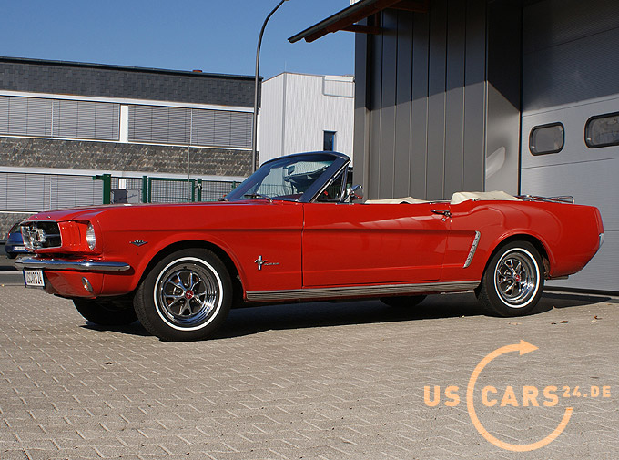 289er 4.7L V8 Motor mit 4-Gang Schaltgetriebe, GT Styled Steel Wheels mit neuer Weisswand Bereifung, Elektrisches Cabrio Verdeck, Cabrio Persenning weiss, Original Mittelkonsole, Neue Pony Leder Innen-Ausstattung in zweifarbig Rot-Weiss, Sicherheitsgurte vorne und hinten, Aussenspiegel auf Fahrer- und Beifahrerseite, Gepäckträger auf Heckklappe, Chrom Luftfilter etc.