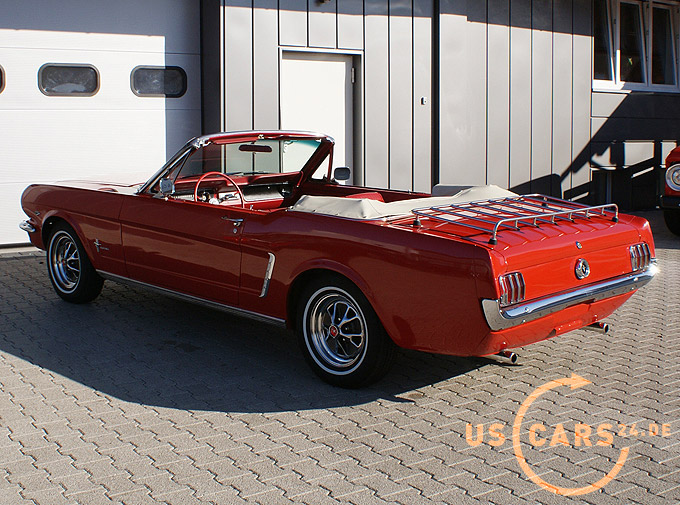 289er 4.7L V8 Motor mit 4-Gang Schaltgetriebe, GT Styled Steel Wheels mit neuer Weisswand Bereifung, Elektrisches Cabrio Verdeck, Cabrio Persenning weiss, Original Mittelkonsole, Neue Pony Leder Innen-Ausstattung in zweifarbig Rot-Weiss, Sicherheitsgurte vorne und hinten, Aussenspiegel auf Fahrer- und Beifahrerseite, Gepäckträger auf Heckklappe, Chrom Luftfilter etc.