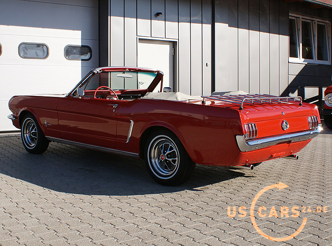 289er 4.7L V8 Motor mit 4-Gang Schaltgetriebe, GT Styled Steel Wheels mit neuer Weisswand Bereifung, Elektrisches Cabrio Verdeck, Cabrio Persenning weiss, Original Mittelkonsole, Neue Pony Leder Innen-Ausstattung in zweifarbig Rot-Weiss, Sicherheitsgurte vorne und hinten, Aussenspiegel auf Fahrer- und Beifahrerseite, Gepäckträger auf Heckklappe, Chrom Luftfilter etc.