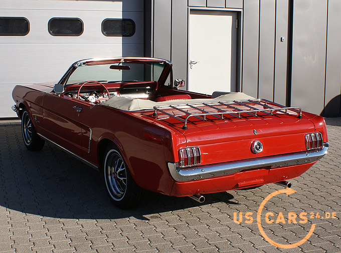 289er 4.7L V8 Motor mit 4-Gang Schaltgetriebe, GT Styled Steel Wheels mit neuer Weisswand Bereifung, Elektrisches Cabrio Verdeck, Cabrio Persenning weiss, Original Mittelkonsole, Neue Pony Leder Innen-Ausstattung in zweifarbig Rot-Weiss, Sicherheitsgurte vorne und hinten, Aussenspiegel auf Fahrer- und Beifahrerseite, Gepäckträger auf Heckklappe, Chrom Luftfilter etc.