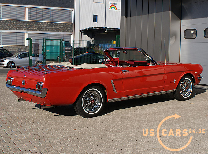 289er 4.7L V8 Motor mit 4-Gang Schaltgetriebe, GT Styled Steel Wheels mit neuer Weisswand Bereifung, Elektrisches Cabrio Verdeck, Cabrio Persenning weiss, Original Mittelkonsole, Neue Pony Leder Innen-Ausstattung in zweifarbig Rot-Weiss, Sicherheitsgurte vorne und hinten, Aussenspiegel auf Fahrer- und Beifahrerseite, Gepäckträger auf Heckklappe, Chrom Luftfilter etc.