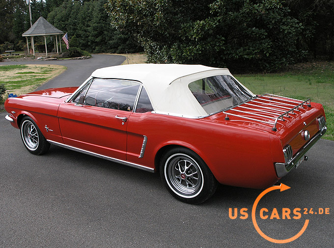289er 4.7L V8 Motor mit 4-Gang Schaltgetriebe, GT Styled Steel Wheels mit neuer Weisswand Bereifung, Elektrisches Cabrio Verdeck, Cabrio Persenning weiss, Original Mittelkonsole, Neue Pony Leder Innen-Ausstattung in zweifarbig Rot-Weiss, Sicherheitsgurte vorne und hinten, Aussenspiegel auf Fahrer- und Beifahrerseite, Gepäckträger auf Heckklappe, Chrom Luftfilter etc.