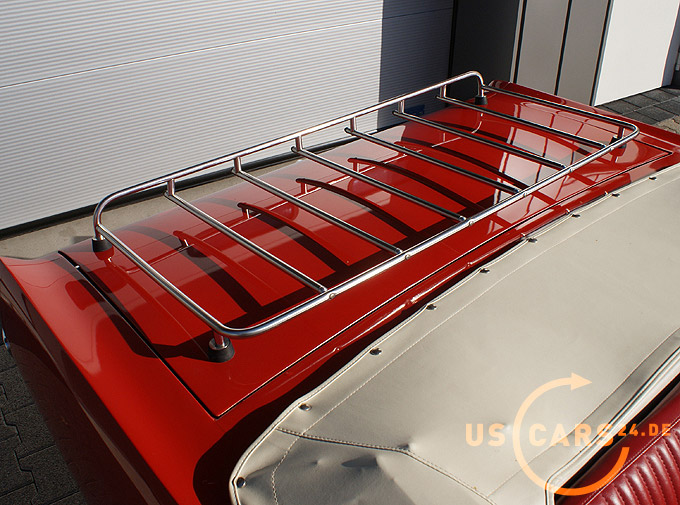 289er 4.7L V8 Motor mit 4-Gang Schaltgetriebe, GT Styled Steel Wheels mit neuer Weisswand Bereifung, Elektrisches Cabrio Verdeck, Cabrio Persenning weiss, Original Mittelkonsole, Neue Pony Leder Innen-Ausstattung in zweifarbig Rot-Weiss, Sicherheitsgurte vorne und hinten, Aussenspiegel auf Fahrer- und Beifahrerseite, Gepäckträger auf Heckklappe, Chrom Luftfilter etc.