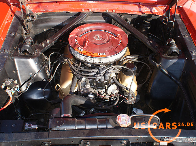 289er 4.7L V8 Motor mit 4-Gang Schaltgetriebe, GT Styled Steel Wheels mit neuer Weisswand Bereifung, Elektrisches Cabrio Verdeck, Cabrio Persenning weiss, Original Mittelkonsole, Neue Pony Leder Innen-Ausstattung in zweifarbig Rot-Weiss, Sicherheitsgurte vorne und hinten, Aussenspiegel auf Fahrer- und Beifahrerseite, Gepäckträger auf Heckklappe, Chrom Luftfilter etc.