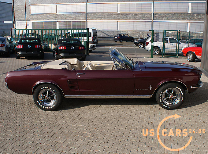 Dieses Cabrio ist eines der wenigen noch vorhandenen Modelle mit dem 1967 beim Mustang erstmals verbauten 390er V8 Big Block Motor. 1967 wurden lediglich 1135 Mustangs in dieser Motor/Getriebe Kombination gebaut wovon nur 78 Fahrzeuge über die hier beschriebene Farb- und Ausstattungskombination verfügen. Das Fahrzeug wurde komplett restauriert und dabei im Originalzustand belassen. Sowohl technisch als auch optisch befindet sich das Fahrzeug in sehr gutem Zustand. Dieser Mustang eignet sich aufgrund seiner Seltenheit und seines Zustandes sehr gut als Sammlerfahrzeug mit hervorragenden Chancen auf einen nachhaltigen Wertzuwachs.
