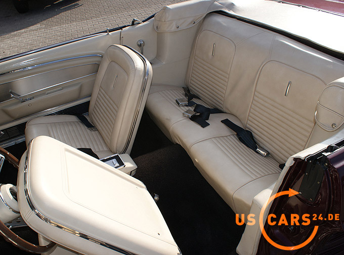 390er 6.4L. V8 BIG BLOCK Motor mit Automatikgetriebe, Deluxe Ausstattung, Servo Lenkung, Elektrisches Cabrio-Verdeck, Cabrio Persenning, Volle Mittelkonsole, Gurthalter in der Mittelkonsole, Convenience Light Paket, Leder Innen-Ausstattung, Holzlenkrad, Cockpit mit 5 Armaturen, Sicherheitsgurte vorne und hinten (5 Stück), Seatbelt Anzeige, Von innen verstellbarer Aussenspiegel auf der Fahrerseite, Aluvertäfelung am Cockpit und den Türverkleidungen, Rückfahrscheinwerfer, 15 Zoll Magnum 500 Felgen mit Center Spinner und Goodyear Eagle ST Whiteletter 255/60 R15 Bereifung hinten und 215/65 R15 vorne, GT Flip Top Tankverschluss, Alu Einstiegsleisten, 9 inch Rear End, Doppel-Auspuff mit 4-fach Endstück, Chrom Luftfilter, Chrom Ventildeckel etc.